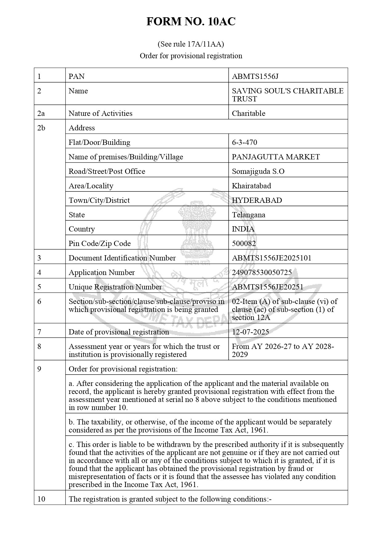 The SAVING SOULS CHARITABLE TRUST